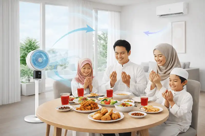 Dengan pendekatan whole-room circulation engineering, perangkat ini menciptakan pusaran udara kuat yang membantu mendistribusikan udara secara merata, sehingga suhu ruangan terasa lebih konsisten dan nyaman untuk berbagai aktivitas Ramadan bersama keluarga di umah.