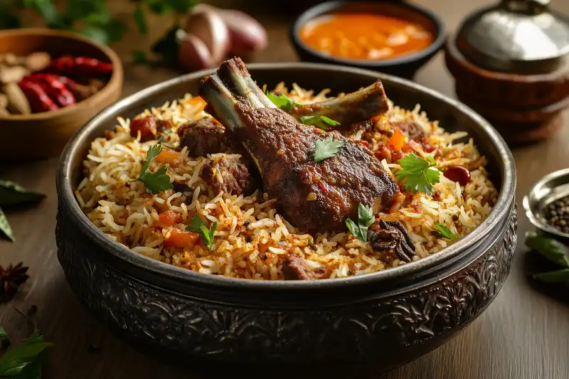 Biryani adalah hidangan klasik dari dapur Asia Selatan dengan teknik nasi berlapis yang khas. Sementara nasi kebuli adalah adaptasi Nusantara yang lahir dari pertemuan tradisi Arab dan Betawi.